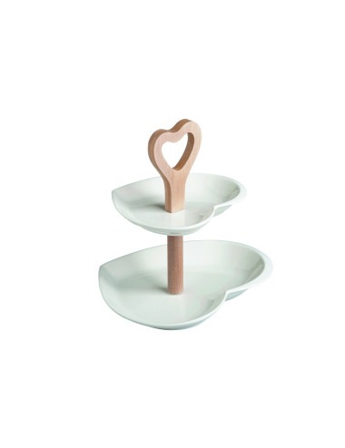 ALZATA DOPPIOCUORE PORCELLANA BIANCA/BAMBOO NATURALE