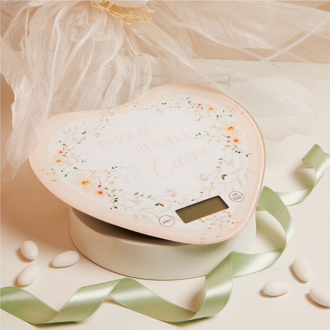 Bilancia forma cuore decoro floreale rosa
