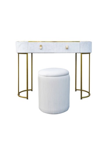 CONSOLLE DA TRUCCO (3 COLLI) C/POUF APRIBILE AVORIO VELLUTO/METAL/ACRILICO