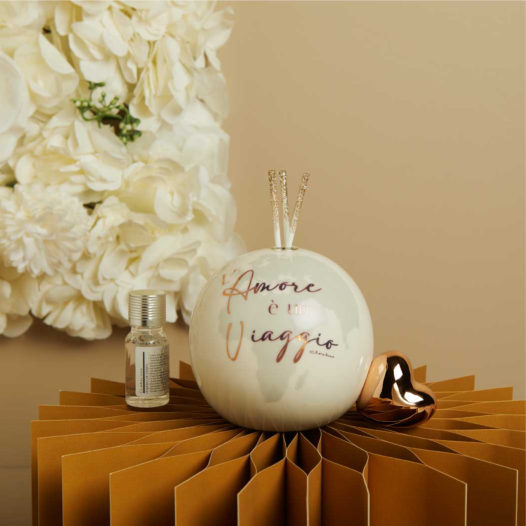 DIFFUSORE GLOBO GRANDE CON CUORE ORO ROSA 10X7.5X7.5 CM