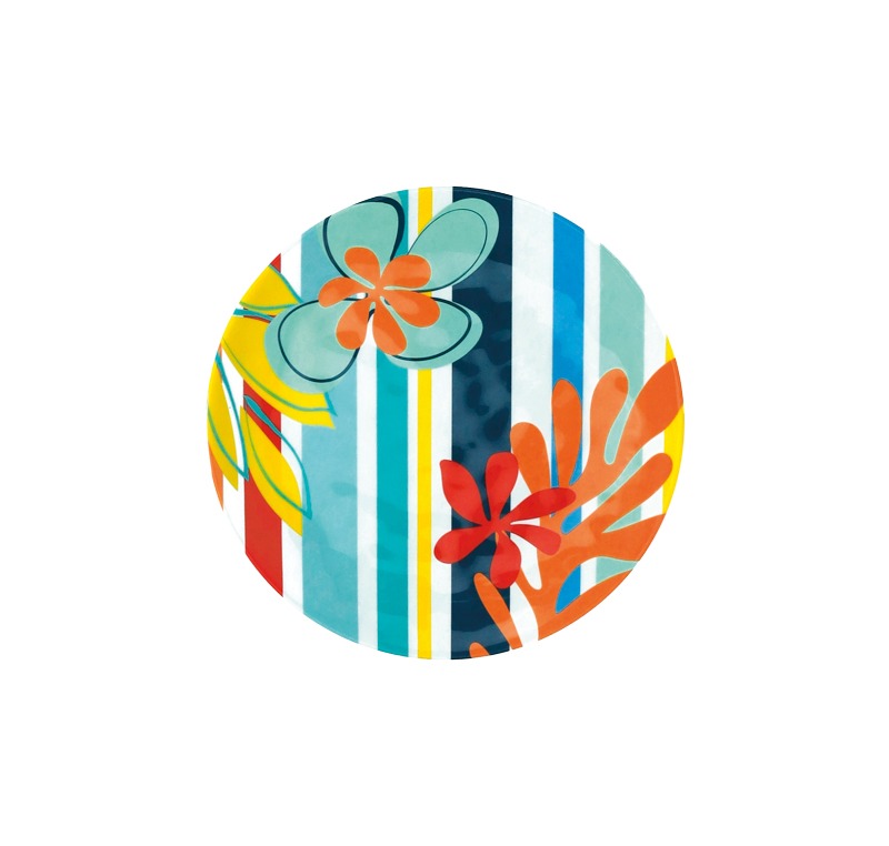 Un tripudio di colori e sfumature, come un fondale tropicale! Tahiti è la collezione delle giornate assolate, della calda spensieratezza e di sogni caraibici pensati per durare tutto l’anno. Decori floreali e linee geometriche fluttuano vivaci su tutta la linea, diffondendo vitalità e buonumore. Composto di resistente melamina, il piattino Tahiti firmato Brandani garantisce praticità, sicurezza ed una scintillante resa delle tonalità. Eco-friendly, BPA-free, riutilizzabile e assolutamente perfetto